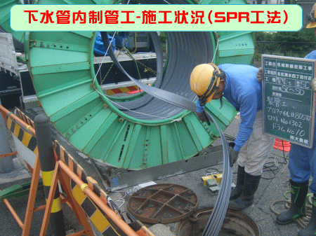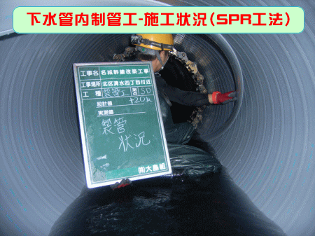 本工事は、老朽化した下水道管(φ1100粍)をSPR工法という特殊工法により塩化ビニル管で製管(φ1020粍)し、既設管との空隙にモルタルを充填することにより強固な下水道管に再構築するもので、又道路陥没の原因となる古く使用されていない取付管も撤去する工事であり、準備期間を含めて約1年管費やしました。